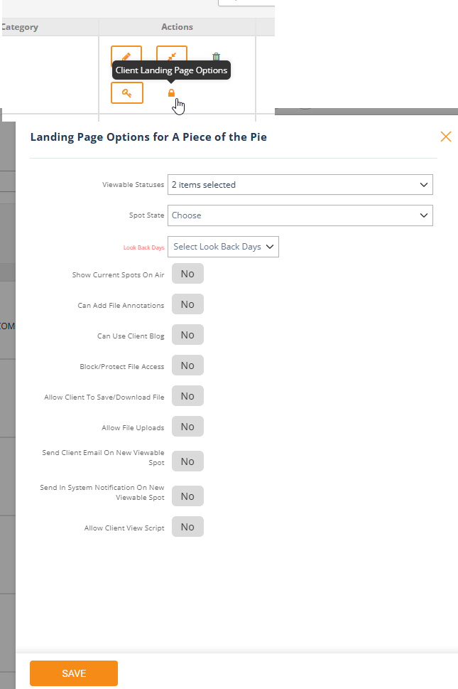 The “Lock” icon is where you establish what is shown to your advertisers on their landing page. You have complete control over the statuses, Spec vs Sold state, time range, and their ability to comment on the requests.