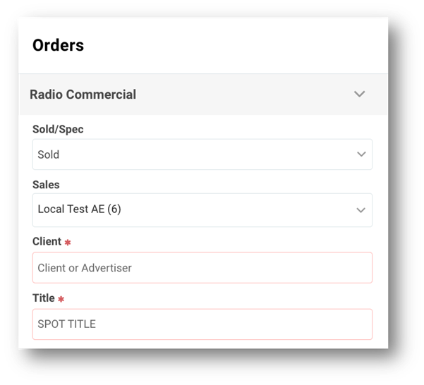 - Sold/Spec: Choose the Sold option for spots that have been sold & Spec for spots that have not yet been sold. For more information on Spec Spots check out this article.