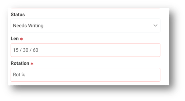 - Length - From the drop down select your spot length i.e. :15, :30, :60. If you select more than one spot length a second line will be created.