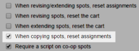 Firm Settings in place that remove these delegations. Now, there is a similar option to treat spots being copied the same way. When this new option is enabled by your Local Admin (or support staff at vCreative) the Writer, Prod, Dub, Traffic and Digital POC delegations will clear out when the spot is copied.