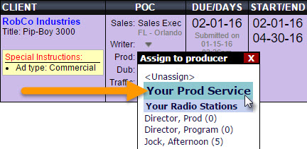 Inhouse/Outsource dropdown inside the QO form to specify that a third-party production department was handling a spot request and not their local production department. While that works for groups who allow the AE/submitters to outsource to production houses, it adds steps when a Production Director or other managers are the only ones permitted to outsource work. Now, the POC column's