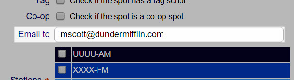 As this field is meant to be used for the clients and advertisers (who don't have PPO account access to spots) we have to make sure the saved emails are not the wrong ones. The field will not save any email addresses that match the address of the AE or request submitter. The