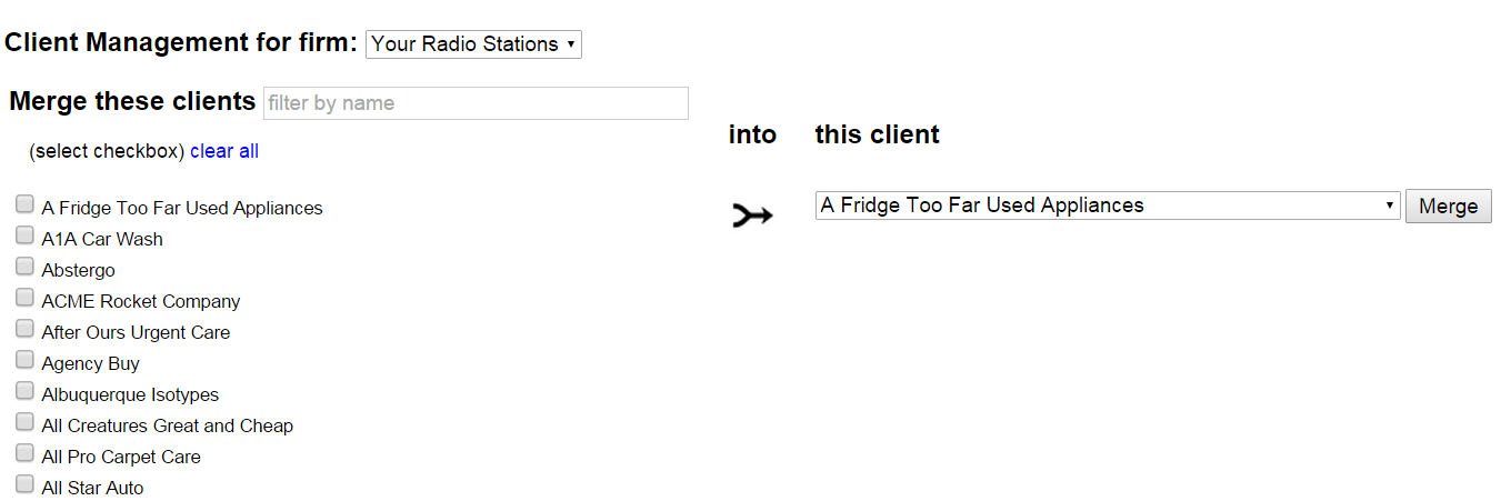 A full listing of client names is listed in the "Client" tool. You can filter by keyword, check off the overlapping names and then choose the target name to merge those into. All orders in PPO under the selected client names will be updated with the single and correct name.