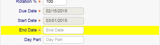 Should a user need to extend the dates of a currently airing spot, the Extend Date process should be followed. To prevent this very specific process from being used to change dates other than the End Date, both the Due and Start dates are now blocked from editing during the Extend Date process.