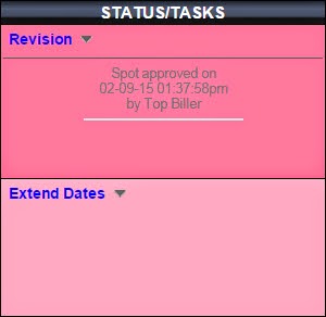 We have slightly adjusted the background color for spots under the Revision status. This was done to give more visual distinction between Revisions and Extend Date spots. They are both still very eye-catching, but farther apart in terms of color.