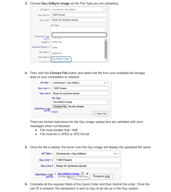 Existing Quu spot, if the Quu ad type is changed to a non Quu ad Type for an existing spot, submitting the order will NOT update the Quu campaign.