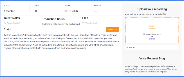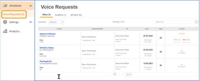 When a voice request is assigned to you in vProMedia, the process is designed to be quick, clear, and focused so you can get in, complete your work, and move on with your day. This guide walks you through what to expect and how to confidently complete a request from start to finish.