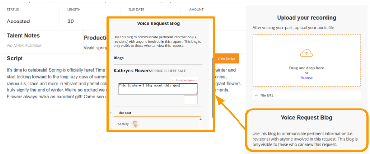If you have questions or need to provide an update, you can use the Blog section within the request.