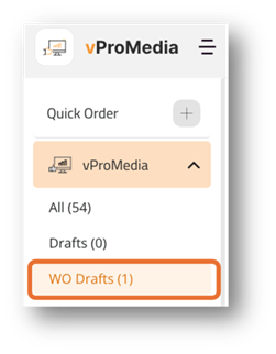 Step 1 - Once the order has been processed and approved in WideOrbit Traffic pertinent information from the order will be sent to vProMedia where a draft PO will be created. This draft will be located in your WideOrbit Draft (WO Drafts) folder.