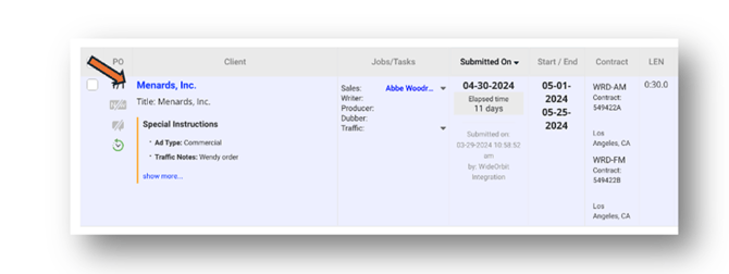 Once the spec spot is sold, you can update the advertiser and convert the client name to the appropriate WideOrbit advertiser name.