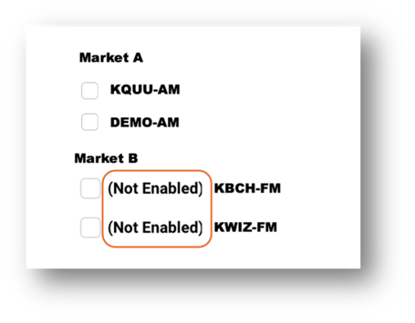 Another feature of the Advertiser Integration is that only the stations associated with a given advertiser in WO can be chosen on the PO. For instance, if Advertiser John’s Pizza is associated only with one given station in WO, then that is the only station that can be selected on the PO in vProMedia. All other stations will be marked as “Not Enabled” to indicate they are not available for use with this advertiser.